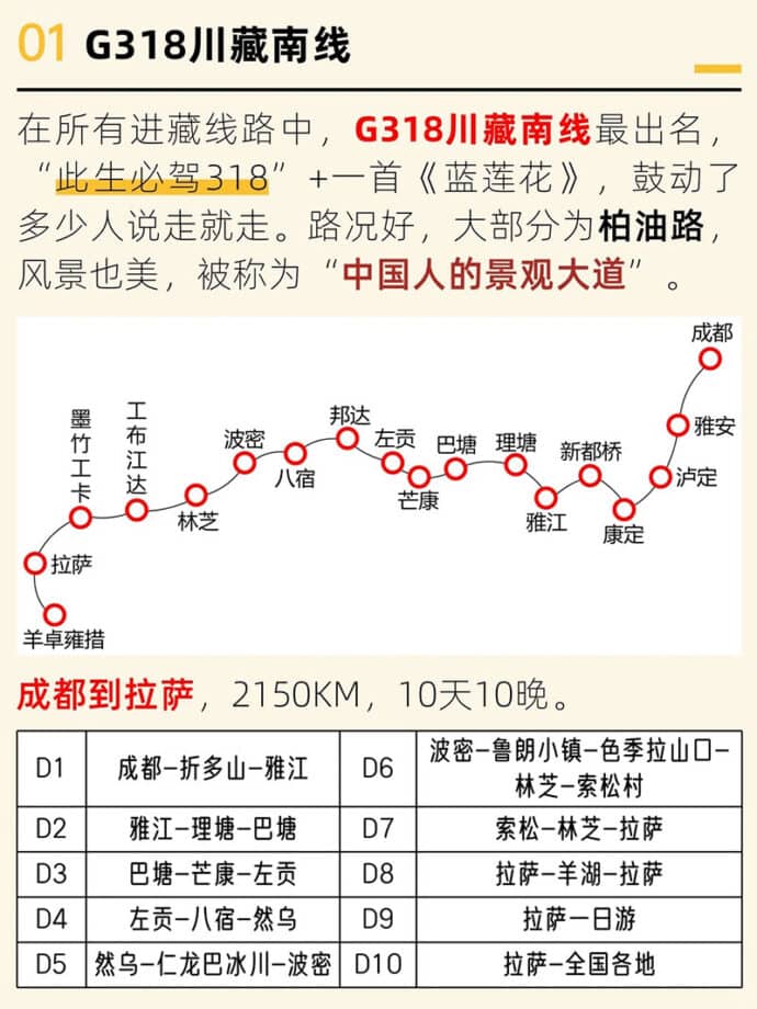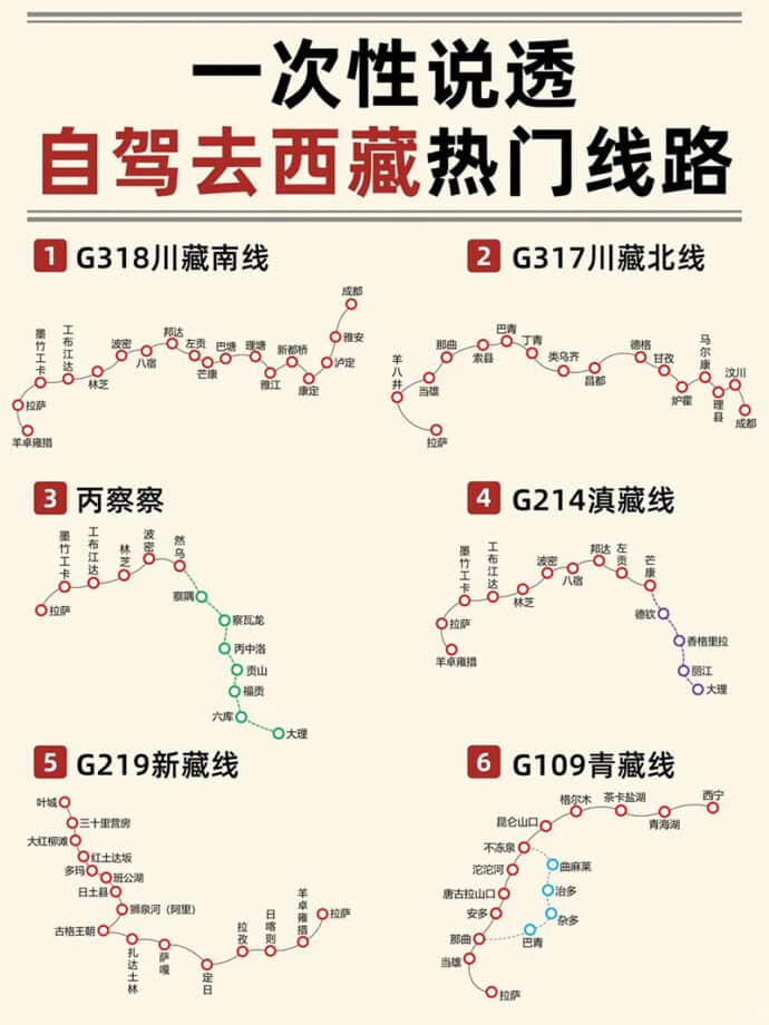 西藏的自驾线路每一条都独具魅力,川藏南线(G318)以自然风光著称,被称为”中国人的景观大道”。而川藏北线(G317)更侧重人文景观,路况相对复杂。青藏线(G109)被描述为最安全的进藏路线。对第一次自驾去西藏以及喜欢刺激、喜欢越野的朋友,今天我们一起探索西藏的7大自驾线路。