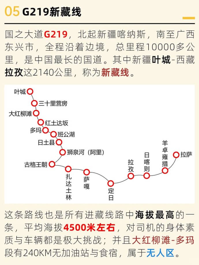 第五条:国道G219新藏线,从新疆叶城至西藏拉孜,全程沿边境线入藏。