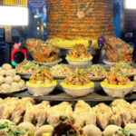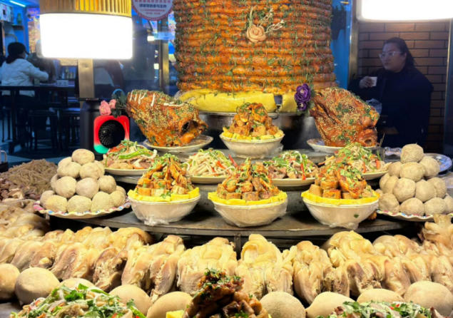 在这条街上你可以吃到各种新疆风味美食,例如烤肉、无花果、抓饭、炒羊杂等,以及烤全羊、牛头肉、烤蛋、烤包子、烤鸽子、胡辣羊蹄等。一定要选择这种炭火烤制的美食,因为它附着汗巴扎的烟火气息。没有一只羊可以完整地逃出汗巴扎,新鲜宰杀的羊每一个部位都是宝。