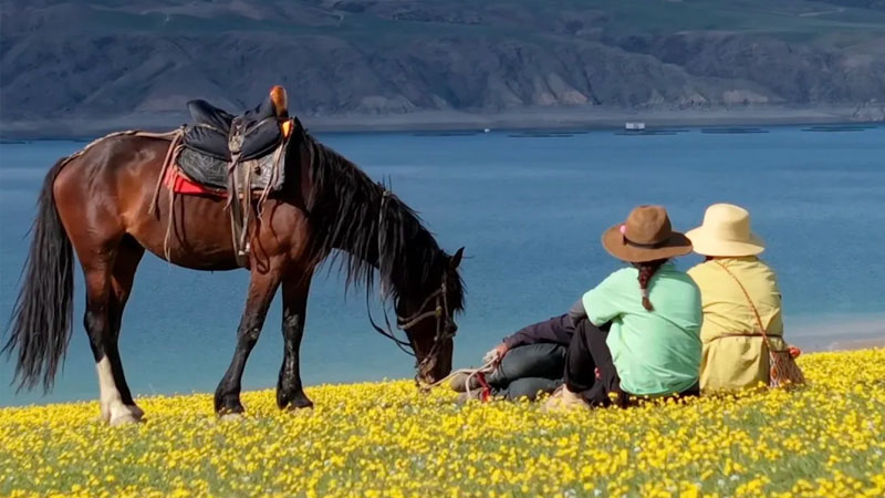 【赛湖露台俯拍】高位定格湖、草、山同框盛景。