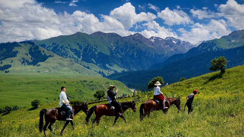 用心安排:留足「一进赛湖」音乐会、下午茶的松弛时段,「二进赛湖」自驾环湖 + 轻旅拍(马背上 / 彩色坦克旅拍二选一)的沉浸式体验,把湖景变成 “移动会客厅”;吐尔根杏花沟搭配那拉提空中草原顶冰花初绽的限定景致,再安排果子沟大桥悬崖机位、多巴胺六星街打卡,让伊犁的 “限定美”成为行程里的独家记忆;218 国道穿越天山胜利隧道的高效返程,既保证出行的节奏,也让西域自然与人文(六星街风情、那拉提草原)成为行程的“质感加分项”。
